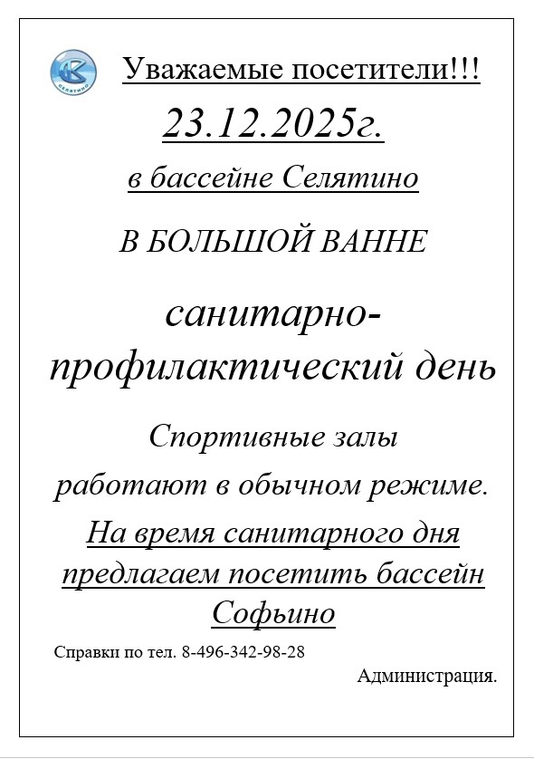 23.12.2025 санитарный день в бассейне Селятино