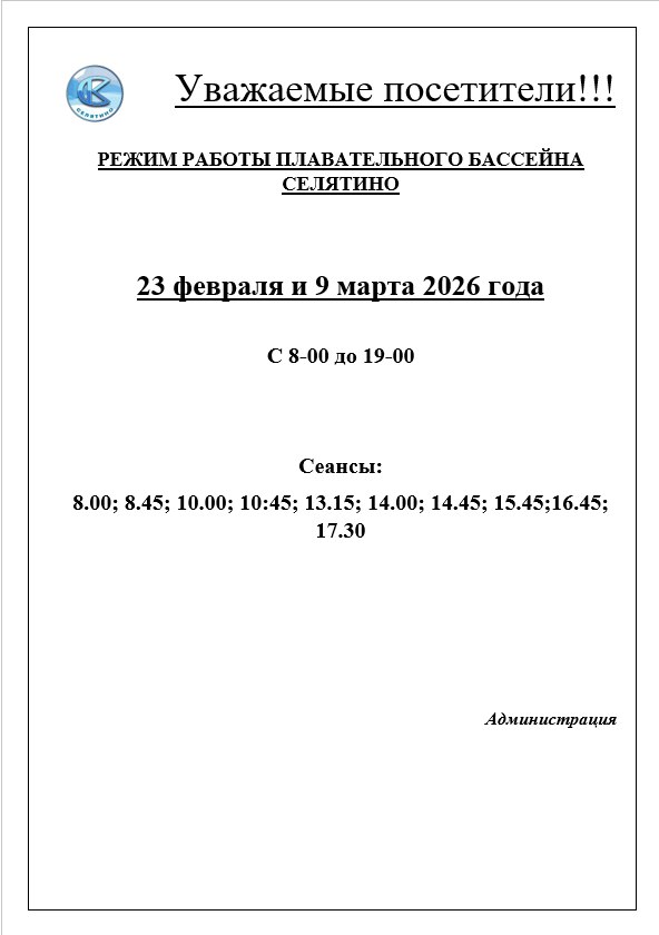 Изменение в расписание бассейна 23 февраля и 9 марта